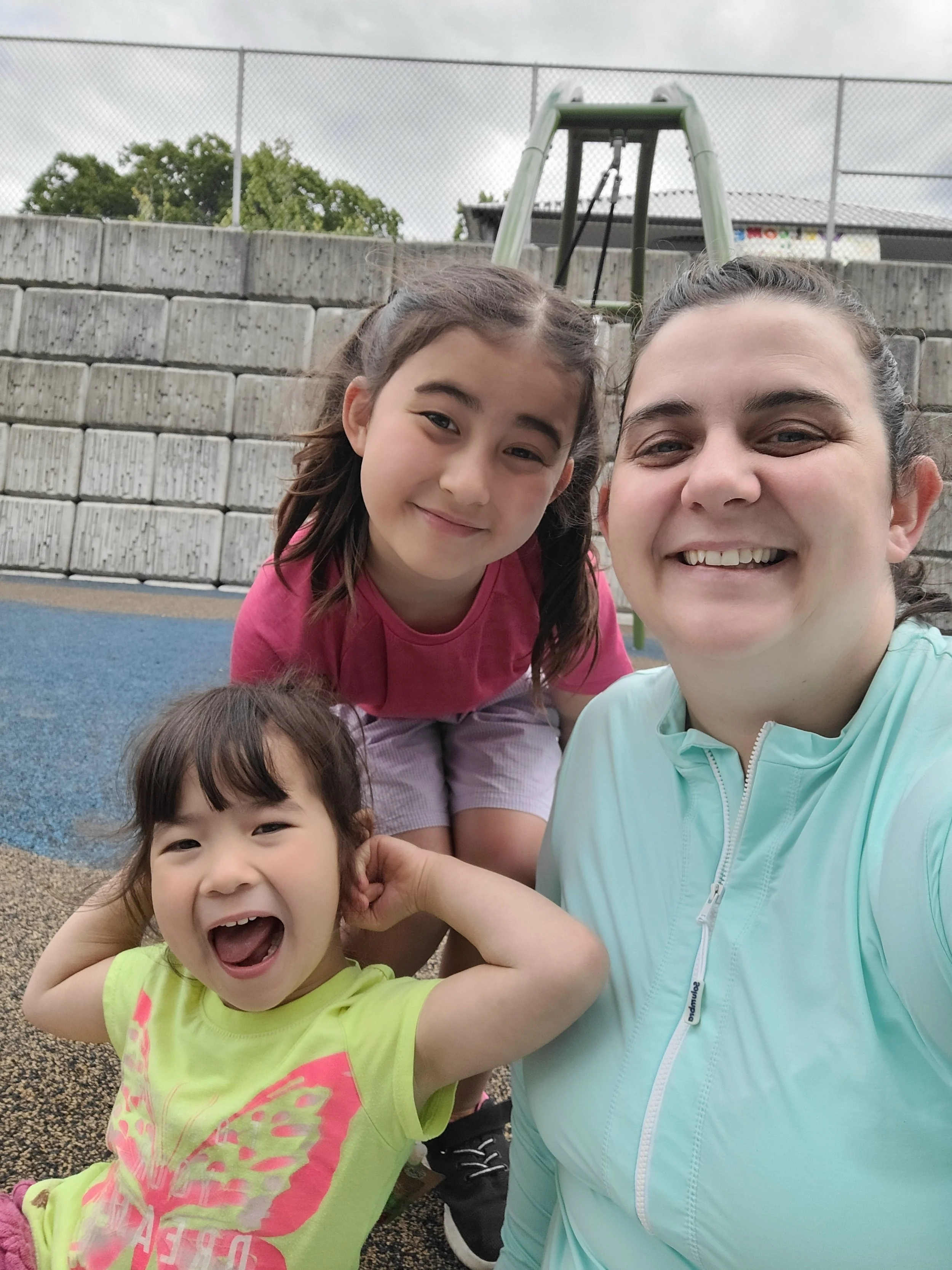 Hanging with my girls, no makeup, hair in a ponytail!